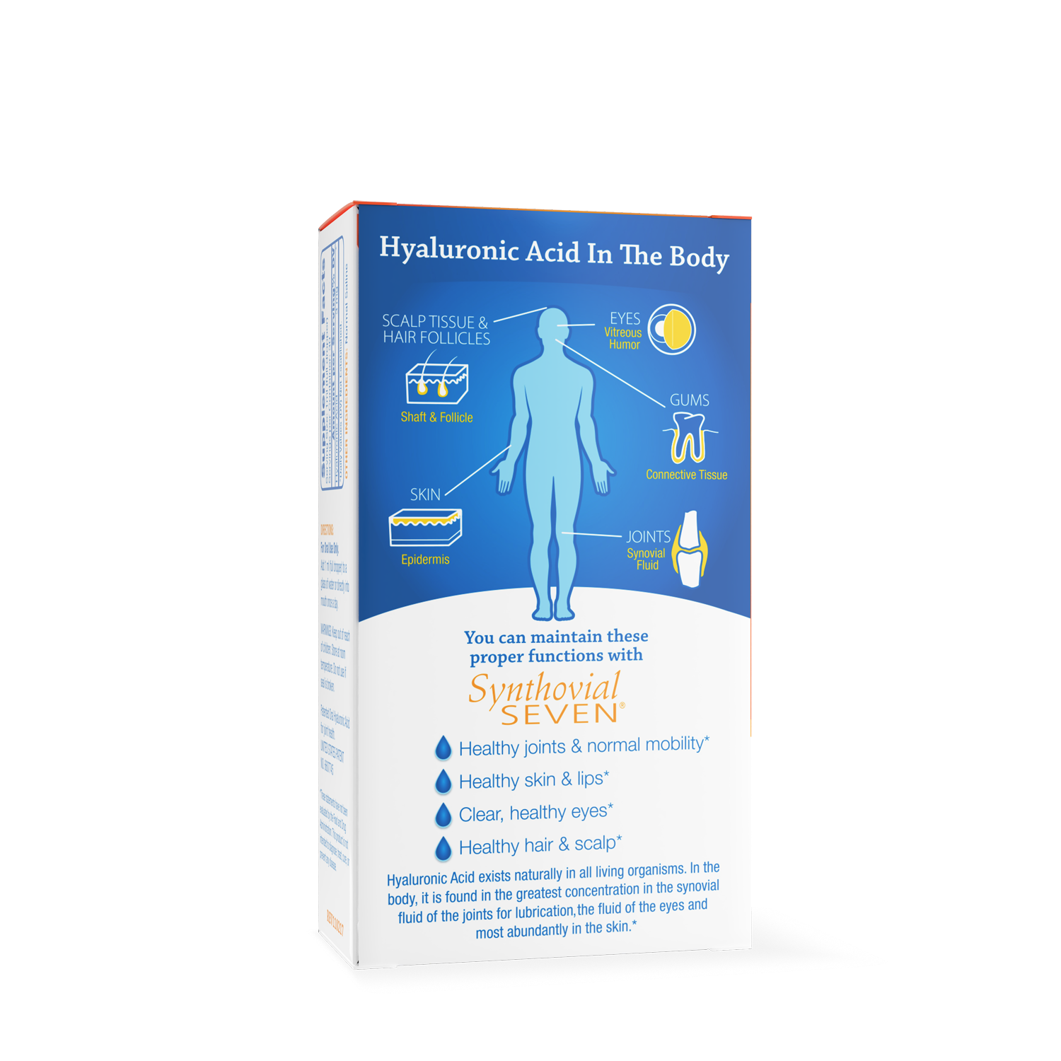 The hydrating properties of HA help support not only eye shape and resilience but also help support nutrients into the eye. So HA actually helps play a major role in maintaining healthy eye function and vision.